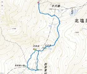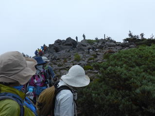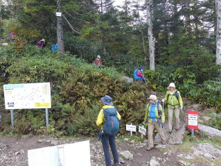 2000mを越える山であるが山頂はオオシラビソの樹木に囲まれていて展望はきかない。山頂が狭いので、個人撮影のみとした。