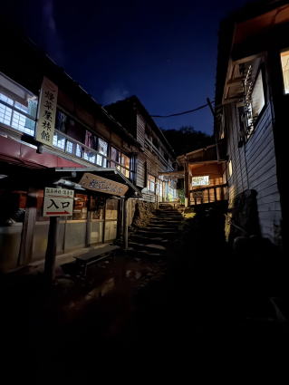 煙草屋さんは歴史深い御宿で、とても趣があります。露天風呂や内風呂があり、特に露天風呂は源泉かけ流しで素晴らしいです。時間帯によっては夕焼けも楽しめます。消灯迄の間、メンバー達と和気あいあいと会話を楽しみました。