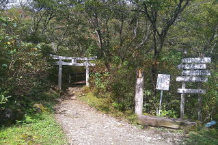支度を整え、少し上がった所にある鳥居(山の神)の登山口で一礼し出発。
