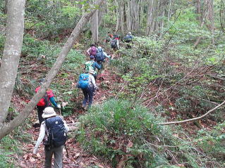 蒜場山を振り返ると何か寂寥感は残りますが後は熊避け対策のワイワイガヤガヤ下山でした。