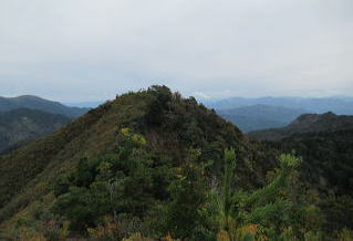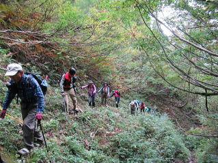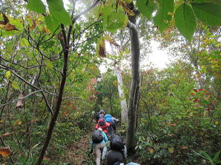 やがて雑木林の向こう側に空が透けて見え、主稜線に登り着き紅葉の始まった山々が出迎えてくれました。