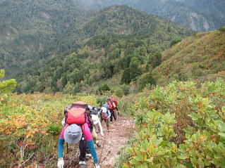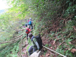 ロープは有りますが今日最大の要注意場所です、改めてリーダーからコース取りと説明を聞いて慎重に進みます。