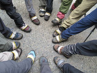 リーダーからスポーツ店には売っていない特殊な滑り止めアイテムを配分され、熊対策の説明を受けてスタート。