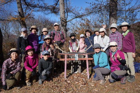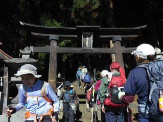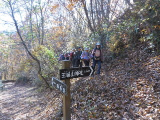 1台が少し遅れたため、予定の24分遅れで登山開始。まず、王城山神社で無事山行が終了しますようにと全員で参拝。