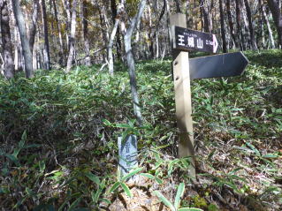 一合目/王城山登山道入口 二合目/石尊下・押手沢 三合目/鳥屋坂 四合目/柴峰 五合目/傘木 六合目/炮碌岩(ほうろくいわ)七合目/舟窪 八合目/中棚尾根 九合目/お篭り岩 十合目/山頂尾根 で一合目、二合目、三合目は、登山口の違いで他の名前の道標がある。
