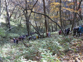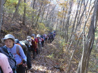 熊対策としては、登山開始直後と五合目で爆竹を鳴らしたが、さすが47人の歩きと声で、出てはこなかった。