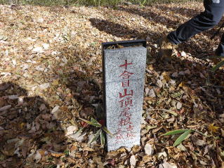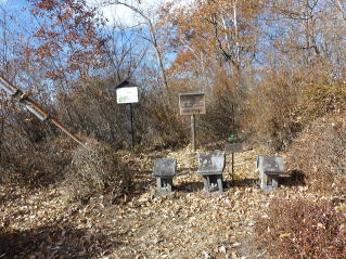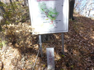 全山落葉樹に包まれた登山道には、登山口から頂上まで下記の石の道標がたっている。
