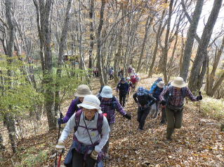 今日は、全行程とも晴れ渡り、暖かな日差しの中、秋の1日を紅葉を見て、木漏れ日を浴びながらゆったりとした楽しい山歩きを楽しみました。