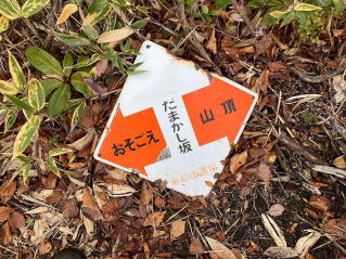 尾根歩きもすぐに終わり、またまた急下り、急登り。 ピーク!!と思ったら「だまかし坂」 でした。大日如来尊様に手をあわせて、最後の急騰を登りきると、 ついに 「鷲ヶ巣山」 山頂!!