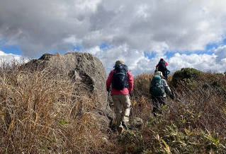 途中下山した仲間と合流。息を整えて最後の急下りです。