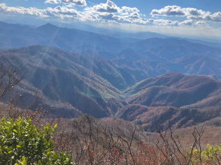山々の眺望をみながらも脚を踏ん張り踏ん張り慎重に下ります。