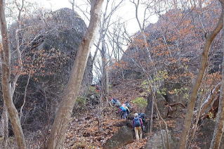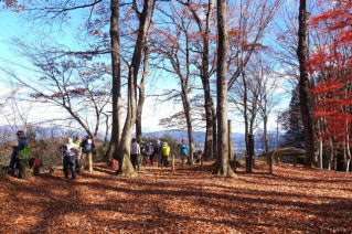 途中から急な登りになり、間もなくすると岩櫃城本丸跡に到着しました。紅葉の中、戦国時代に思いをはせ、しばしの休憩をしました。