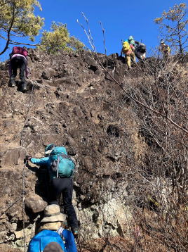 記念撮影を終えた人から順次降下する。九合目付近で昼食を摂り、その後岩場を下り城址を見学し下山した。