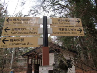 落葉した樹間から豪華な別荘やコテージが見え、旧碓氷峠遊覧歩道に入ると案内板に立ち止まりながら学習を繰り返しました。