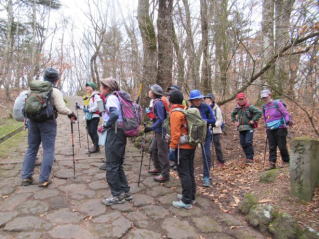 新潟から4時間少々バスに揺られて軽井沢に到着、シーズンオフで観光客もまばらな旧軽井沢銀座を登山姿の集団がスタートしました。