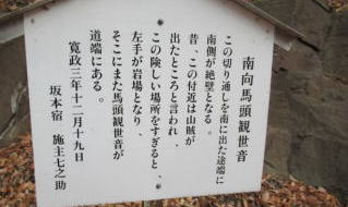 広くて歩き易い道が続きましたが刎石山辺りから急坂やヘツリ道が始まり、難所越えで力尽きた馬が多かったのでしょうか、馬頭観音が数多く見られました。