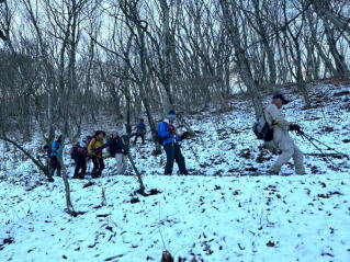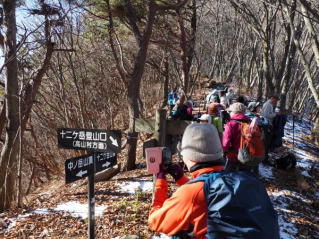 初寒波到来後珍しく晴れた新潟をマイクロバス2台41名で出発。途中六日町、湯沢辺りは見事な樹氷で圧巻の白一色でとても綺麗でした。トンネルを抜けた群馬県側平地も薄っすら雪化粧の中、道の駅中山盆地へ立ち寄り身支度後登山口へとバスで向かう。登山口Pでは先客1台(5名)有。