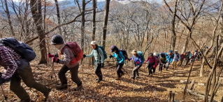 毎年12月にやっていた冬の富士を見る会山行。今年は九鬼山と三方分山に決めた。三方分山からパノラマ台までは少し長い行程なので、昼食なしで貫通することも事前に参加者に知らせていた。難易度も少し上げて参加者を募集したが、初日にいきなり38名の応募があった。でも宿も了解、中型バスへの変更もできたので、39名の大集団での決行となった。