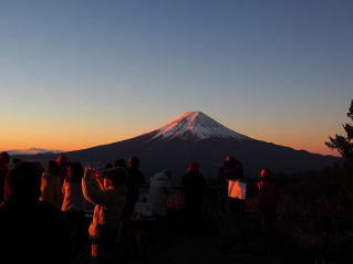 ピンク色に染まる富士山 |