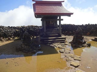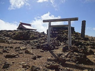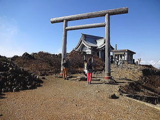 ハイラインは料金所まで大渋滞、駐車場はすでにほぼ満杯でした。まずは刈田嶺神社の鳥居をくぐり、刈田岳に行きました。 |