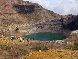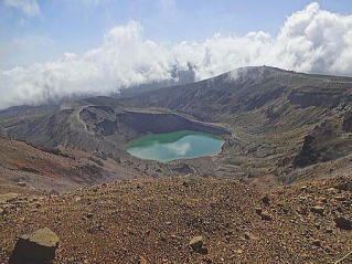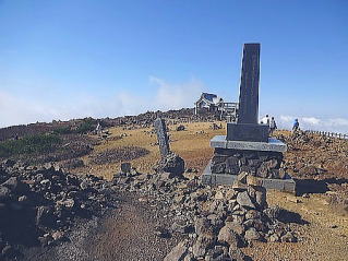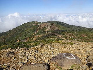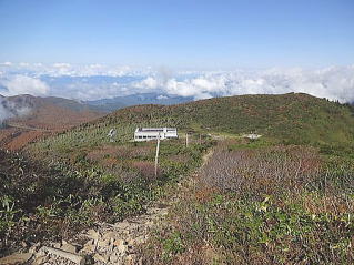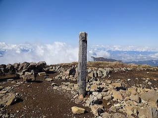 熊野岳は蔵王界隈では一番高い場所です。避難小屋側からはさしたる登りではありませんが、地蔵岳側からだとけっこう登り応えがあります。