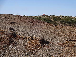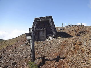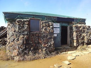 避難小屋の尾根に上がりました。避難小屋の近くに古い石室がありますが、朽ちていて屋根がありません。まあ風は避けれそうです。