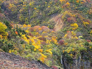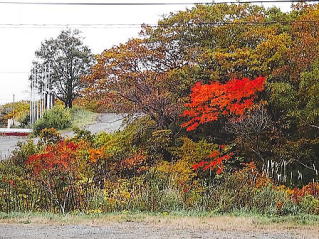 エコーラインのスノーパーク上部周辺の紅葉の状態です。見頃です。 |