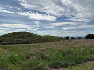 | 今年はコスモスが少ない二子山古墳 |