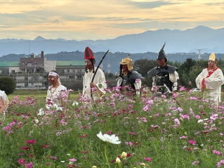 次に足を運んだのは、30万本ものコスモスに彩られるという二子山古墳です。今年は猛暑の影響で花の数は例年の半分ほどとのことでしたが、それでも秋風に揺れるコスモスは美しく、古墳とのコントラストが印象的でした。持参したおにぎりと、温かいすいとんと味噌こんにゃくで、心もお腹も満たされる至福の昼食。自然の中でいただく食事は、格別な味わいです。
