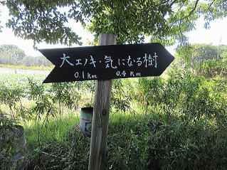佐潟水鳥湿地センター(9;55)…(赤塚砂丘を歩く)…分岐標識@(10:15)…タブの木(10:25)…分岐・舗装道路終り右へ(10:30)…(大エノキ標識)…大エノキ(10:32)…分岐・左/越前村へ右/気になる木へ…清三郎山…気になる木(10:37-10:50)…大椨の木(往路を戻る)…見晴らしの丘