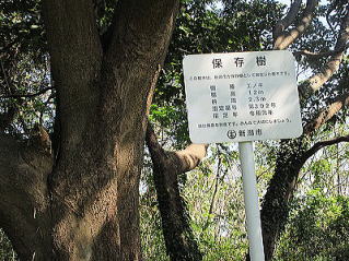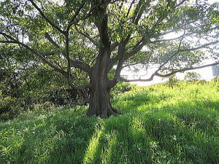 角田山に向かって真っすぐ舗装農道路歩き、舗装が尽きる辺りで分岐を右折すると間もなく、「大エノキ」が現れました。