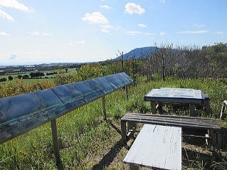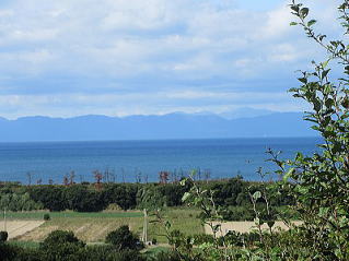 見晴らしの丘へは往路を戻り、小高い台地を目指しました。旧新潟市で「水と土の芸術祭」では自慢のポイントとして幟が靡いていたとか。今日は良く晴れて目の前は佐渡の山波と青い海、振り返れば遠く粟ヶ岳、守門岳から越後三山までよく見渡せました。
