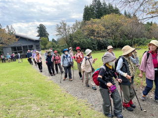 予定より早く雪国植物園に到着したが、雨は降っておらず、早速入園する。ちょうど「ヒガンバナ祭り」が開催中で、園の人とじゃんけんをして勝った人には、外山康雄先生の秋の山野草の絵はがきプレゼントといううれしい企画があり、皆さん大いに盛り上がった。私は早々に負けてしまったが、多くの方々が勝って、美しい絵はがきをゲット。(いいなぁ〜)
