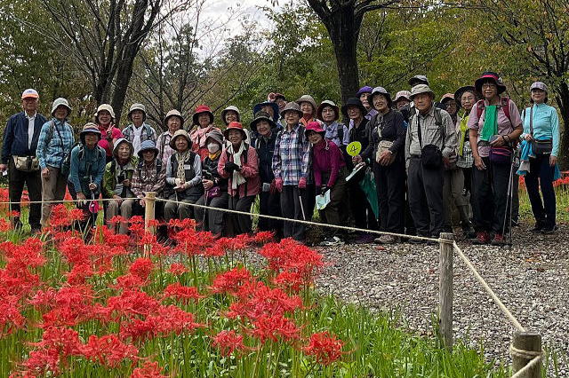 中には白いヒガンバナや黄色のショウキズイセンも咲いており、皆さん思い思いにシャッターを切り、写真に収めていた。