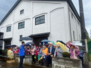 昼食の間本降りだった雨は小雨になっており、午後は地元ガイドさんの案内で摂田屋町歩きへ。