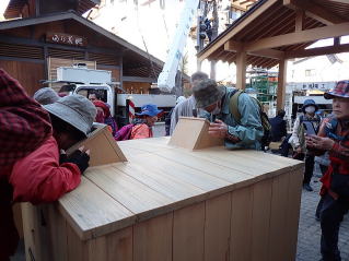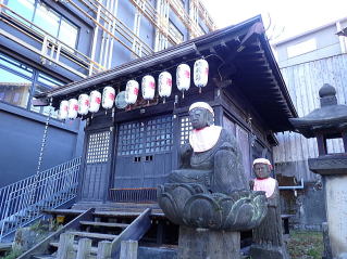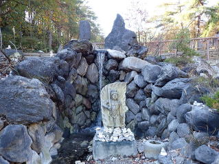 次は、新名所となった裏草津を見学。華やかな湯畑とは違い、「地蔵の湯」が湧きでる落ち着いた場所です。「顔湯」を覗き、顔パックを行い美男・美女になりました。