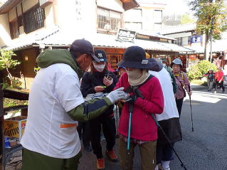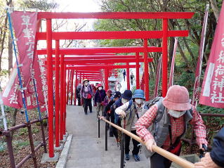 最後はツツジ山への登り、今日一番の難所もなんのその、皆さん難なく登りました。素晴らしい秋晴れのもと、ゆったりと湯の町を楽しみました。 道の駅八ッ場ふるさと館で名物「妻恋キャベツ」を買い帰路につきました。