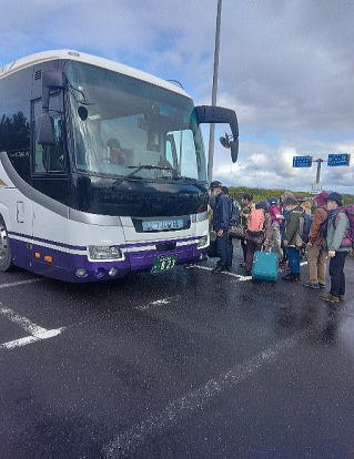 空港前に待機していた観光バスに乗車。一路、足立美術館へ向かう