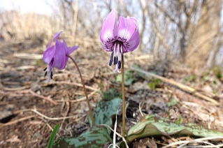 剣ヶ峰山頂、期待通りのカタクリが群生 |