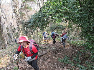 妙光寺の墓地がきょうの登山口である。細い流れを越え急傾斜の登山道となる。
