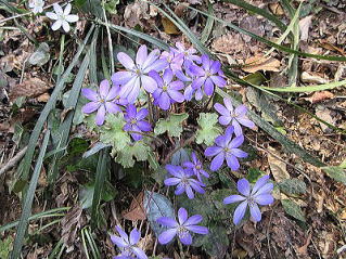 登山道の両脇は雪割草とカタクリの両方の花が同時に見られ丁度良い日に当たって嬉しい。