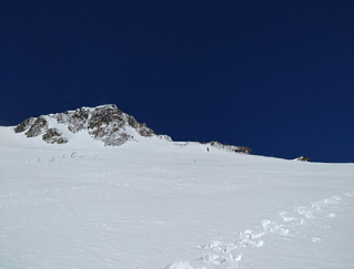 小さな岩の塊に見えますが右にトラバースして尾根筋に乗ります。