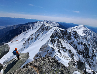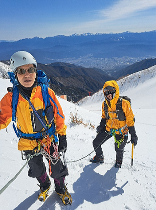 下を登っていた人に当たらなくて幸いでした。 呆然となりましたが、後続パーティのガイドさんが私達のガイドの後輩で稀有な事ですがアイゼンを回収して頂きました。