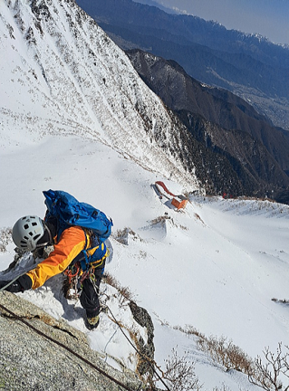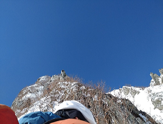 アイゼンを失って核心部が来ました。太いのはワイヤーです。聞き忘れましたがお助けロープでしょう。