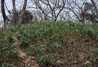 七面官脇の白いキクザキイチゲの群生に見とれながら、いよいよ妙見山(二の丸)に向かう山道を登り始めると雪割草やオーレンがポツポツ見られましたが、いよいよ二の丸から村岡城址に向かう辺りから歓声が上がってきました。