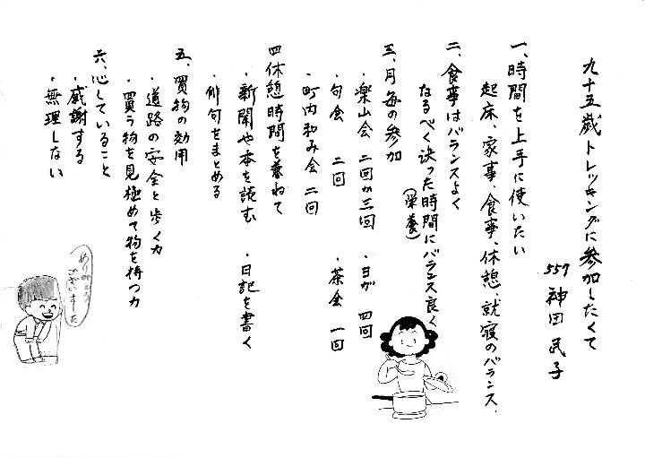 一番気をつけているのは食事。バランス良く息子と同じ量を食べていても太らない。それが90歳過ぎの一般的のことのようだ。