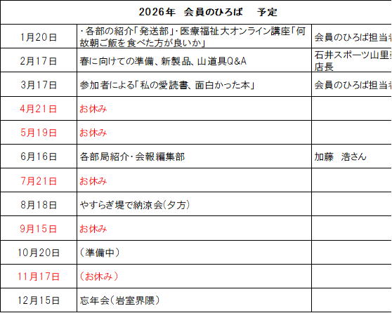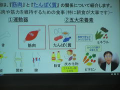 次に、「新潟医療福祉大学オンラインセミナー・なぜ朝ご飯を食べた方が良いかを考える」を視聴しました。高齢になると筋肉量が急激に減少することで転倒やフレイルを起こしやすくなり、その予防策として高齢者は一日三食きちんと食べ、一食あたり20グラム(魚なら一切れ程度)のタンパク質をとることが理想とのこと。長く山行やトレッキングに参加するためにも、食事は大切なことでした。
