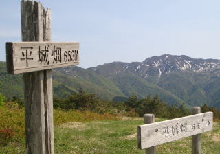 平城畑は芝生草原、「キジムシロ」が敷いたように咲いていた。枯れた芝生に黄色の絨毯。平城畑は放牧牛を上げる場所。ここから放牧され、