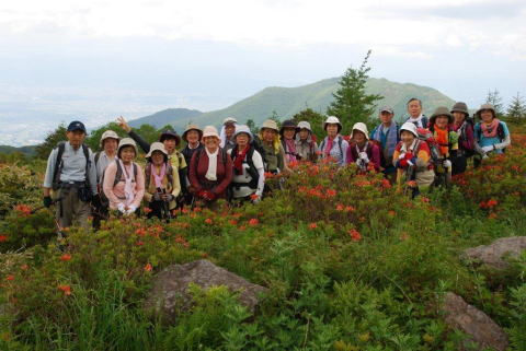 休憩していると我々と同年代の10人ほどのグループが登って来た。やはり女性が多い、花の山である。