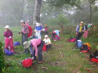 湿原を後に樹林帯に入り、最初の休憩で気がつけば、雨は上がってます。 |